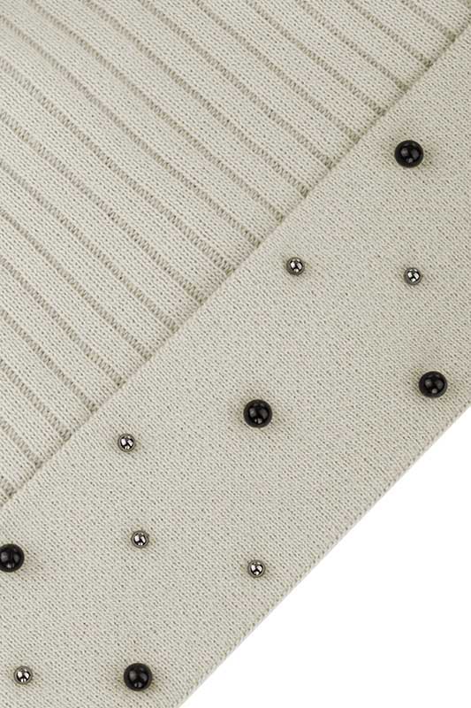 Czapka damska uszyta z miękkiej dzianiny akrylowej o dotyku kaszmirowym. Podszycie polarowe zapewnia idealną ochronę przed niskimi temperaturami. Czapka swój elegancki styl zawdzięcza aplikacji z perełek, które zostały umieszczone na gładkim wywiniętym otoku. Perełki są w dwóch wielkościach 5mm i 8mm oraz w kolorach czarnym i grafitowym. Wyjątkowy wygląd dodaje pompon, który jest idealną imitacją szynszyla zarówno w kolorze jak i w dotyku. Produkt występuje w 8 kolorach: jasny beż, czarny, jasny szary, szary, grafitowy, ciemny beż, miodowy, czerwony.