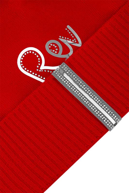 Czapka damska o dotyku kaszmirowym wykonana z przędzy akrylowej. Świetnie dopasowuje się do każdego rozmiaru głowy. Oryginalny wygląd zapewnia aplikacja z foli połączona z dżetami. Wywijany otok z paskiem filcowym, srebrną folią oraz dżetami wzbogaca czapkę nadając jej uroczy wygląd. Dostępna w 7 kolorach: czerwonym, czarnym, jasno szarym, szarym, grafitowym, pudrowym różu i jasnym beżu. Ocieplona polarem jest idealnym nakryciem głowy na chłodne dni. Wyjątkowa stylistyka czapki została podkreślona przez okazały pompon.